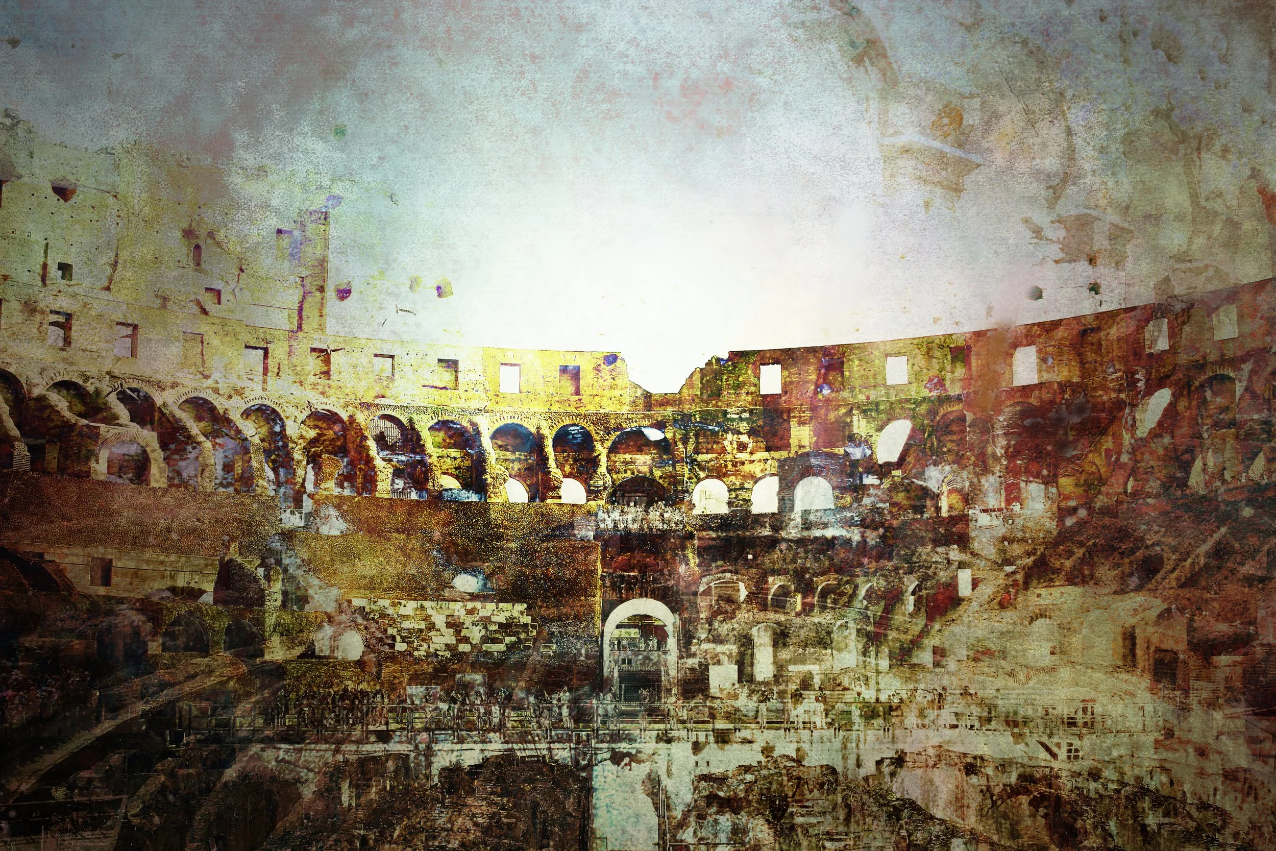 This image reconstructs the Colosseum as it exists in shared memory—fragmented, faded, and layered with time. Rather than depict a fixed moment, it evokes how history persists through erosion. Shapes remain, but details blur. The work suggests a memory passed down through generations, where presence survives through form, not precision..